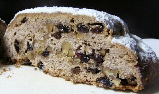 薄く切ると、くるみのところから割れてしまうという、すっごくヘンなシュトレンになってしまいました・・・