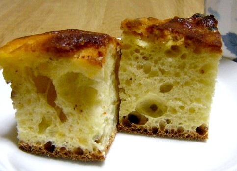 そのまま待つこと1昼夜。やっぱりだめみたい。原因を考えると、あのイースト、耐糖性じゃないのかもしれません。ポーリッシュに使用したイーストの量そのものは多くなかったし、さらにこのリッチな生地を発酵させる力はもともと少ないイーストだとすれば、膨らまないのに合点がいきました。
