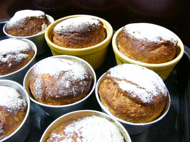 プリンカップやココットなどを動員して、ぽっこりマフィン。あ、この形はもう、「イングリッシュ」の名前は冠せられないんでしたっけね。