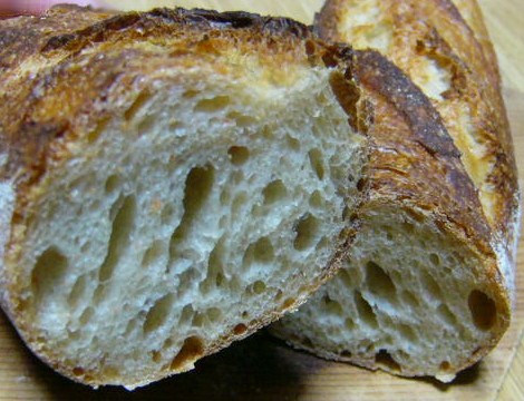 だけどだけど、やっぱり高温でか~~~っと焼くってのは、バゲットの命よね。パリパリのクラスト、大小の気泡が入ったウマウマなクラム。それがないなら、すっぱくてパリパリ&穴ぼこのほうがよほどバゲットとしてよろしい!