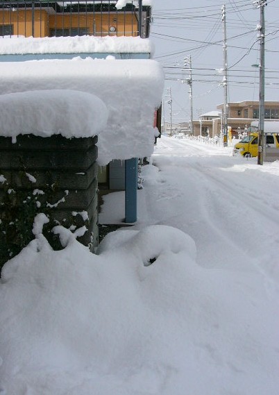 それから、雪は降ったらすぐに除雪するのが一番らくだと思います。気温が上がってくると、雪がべたついてきて、雪かきするときに道具にくっついて、やっかいなんですよね。それに、溶けたり凍ったりを繰り返した雪は、硬いんだよなぁ。除雪車が置いてった雪も硬くてやっかい。
