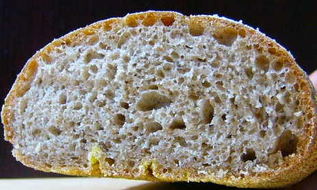 クラストはがしっと厚くて、中はしっとりしている。シェフが本で説明しているパンに、そんなに遠くない。見た目以外は。