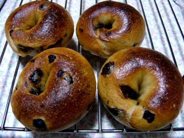 ベーグルの艶は発酵が未熟なものほどピカピカ艶々のような気がします。