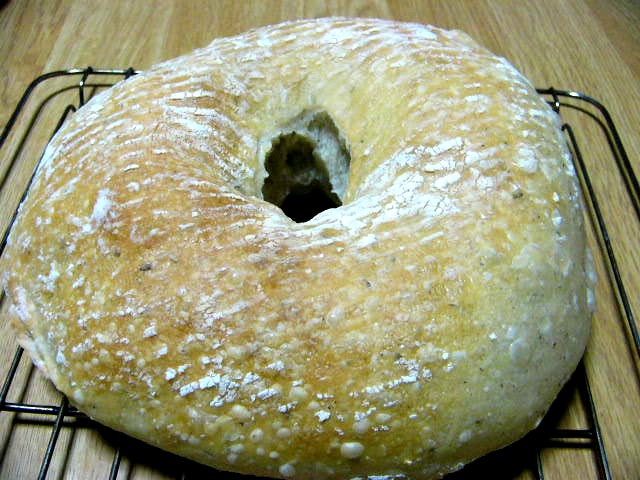 真ん中に穴あけなかったら、食感かわるんだろか~。どうしてわざわざ最終発酵がすんでから穴空けるんだろか~。