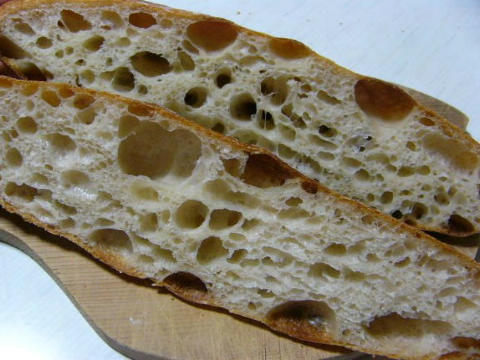 1.長時間発酵したものは、クラムにたくさんの気泡が入る。