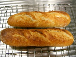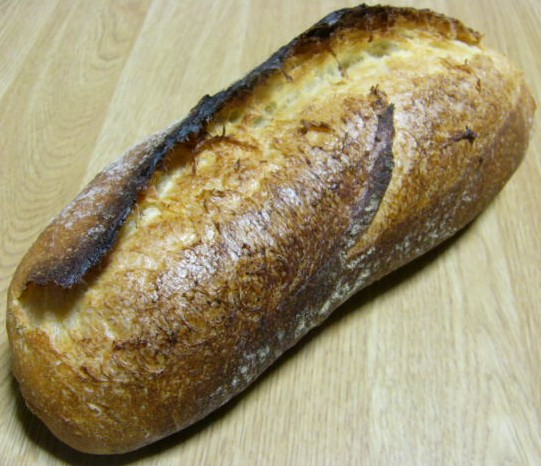 では、私が銅板どころかヘルシオもなくて、おもちゃオーブンしかもっていなかったころに焼いたバゲットの記録を、多少加筆してここにアップしてみます。よかったら参考になさってください。