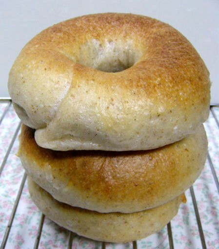 >全粒粉入り、しかもくじらさん家の粉の入ったベーグル、おいしそうです♪