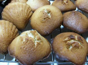 といいつつ、やっぱりフィナンシェ型が一番だなあとも思います。あれなら一番金属に触れる面積が大きいもの~。厚みも全体が均一にできるでしょうね。今回のマドレーヌの型だと、生地が厚いところと薄いところがあって、ちょい食べにくいかも。でもぱくぱく食べちゃうけどさ