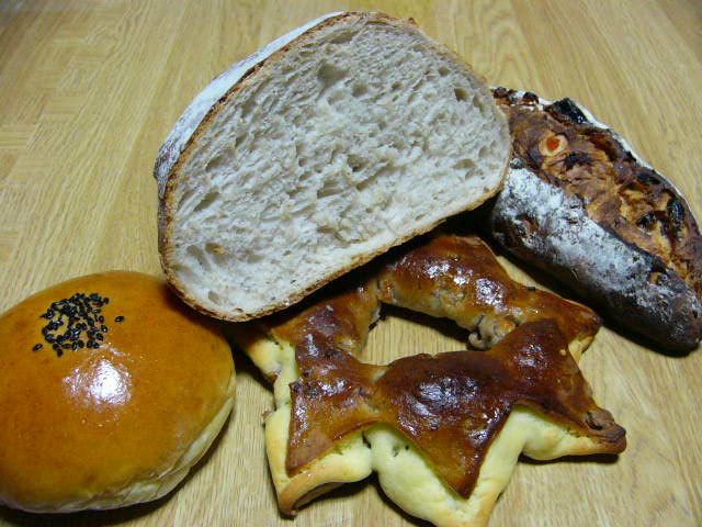 っていうかさ、石窯で焼いたパンって、クラストの色が濃い目で、かりっとしてて、みたいな印象を持っていたんだけど、ここのパンは、そういう点で、ふつ~っぽい。