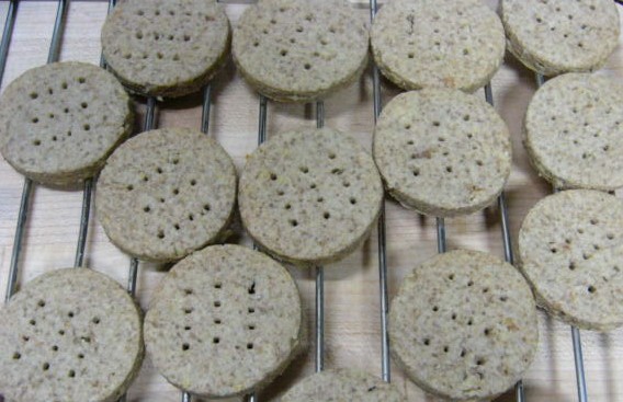 前に、クネッケっていうライ麦を使ったクラッカーみたいなのを作ったことがあったんですが、あれがなかなかオツな味だったのよね~。で、がちまい家のライ麦のビスケットとはいかなるものか?と思ってね。