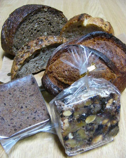 手前右から、「不思議なお菓子」、そのとなりがプンパニッケル、後ろに行ってヨーグルトライ、たぶんコルンバイザー、ドゥフテンブロート、一番うしろのはたぶん「六穀」だと思います。
