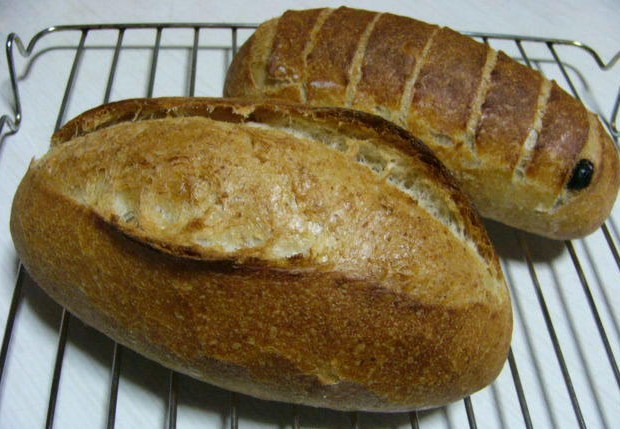 皮が薄くて、中身がほどよくもちもちで、軽くて、粉の香りがよくて、、、ってのが私の好みかなぁ。クープが開かないと軽く焼きあがらないんだよね?