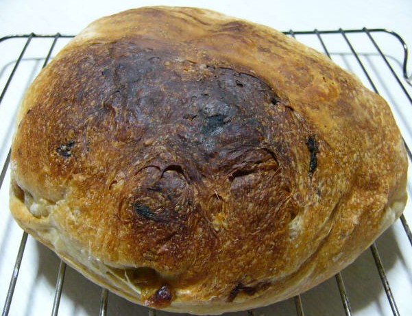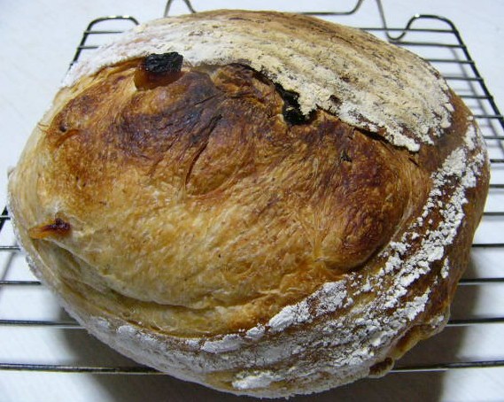 ここまで焼くのに、40分以上かけてしまいました。ヘルシオで焼くときは220度で25分で十分なんだけど、このオーブンだと、最高の200℃で25分焼いたら、クラスト全体が真っ白で、全然焼きあがっていなかったんだもん。それで、パンの前後を入れ替えてさらに20分焼いた姿が、画像のパンなのね。だから、前半のクープが開くまでの時間は、確かにクープは熱源から遠いところにありました。焦げているのは、前後を入れ替えたために、今度はクープが熱源に近くなったためです。