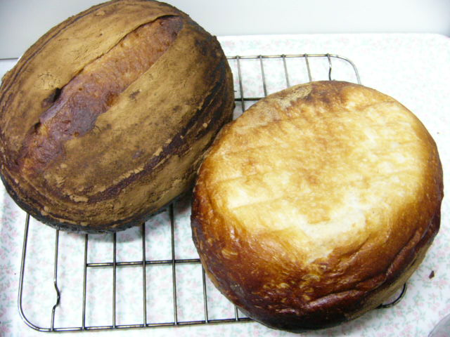 ま、結局どっちも底は白く、脇が黒く、上もかなり焼きこんだカッコウになっています。クープは開くことができず、そのかわりに脇の方が、割れはしないものの、大きく皮が伸びた?ような感じ。