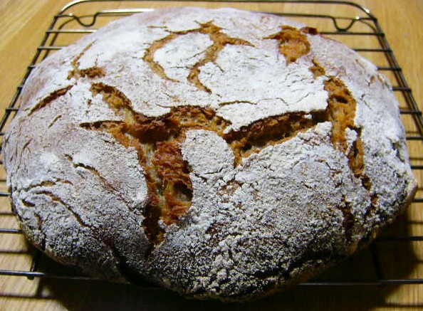 クラストはがしっと厚くて、中はしっとりしている。シェフが本で説明しているパンに、そんなに遠くない。見た目以外は。