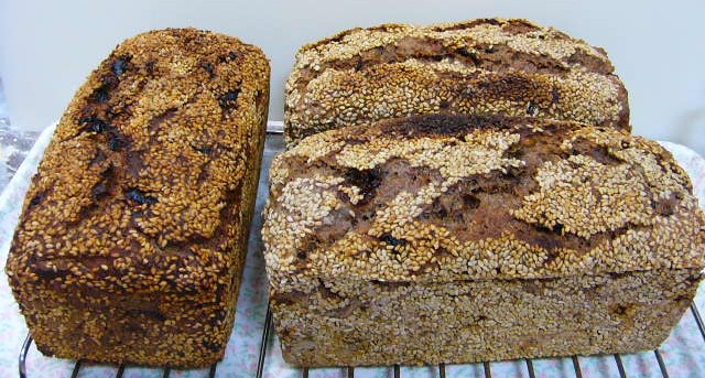 右の2本はボロオーブンで。オーブンに3本は入らないので、1本だけ無水鍋で焼きました。それが左の子。オーブンより火力が強いみたいで、同じ時間焼いたんですが、右の二つよりもクラストがかた~く焼きあがってます。