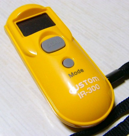 温度計。なんと、生地に差し込まなくてもよいのです。赤外線かなんかが出るらしく、中の温度がちゃんと測れる。