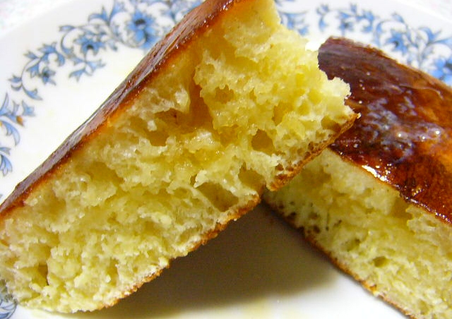 今朝焼いたのと何かが違う。あ、そうか、時間を置いたせいで、発酵した風味がさらにプラスされて、ちょっとパンっぽい仕上がりに。