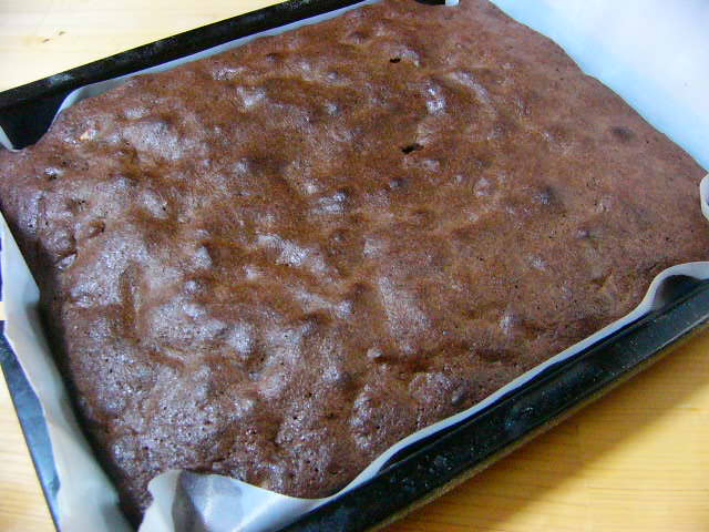 もとのレシピと違うのは、型が一回り小さいことと、ココアが足りなかったのでその分を粉で補ったことと、サラダ油も足りなかったのでマーガリンを溶かして加えたことです。
