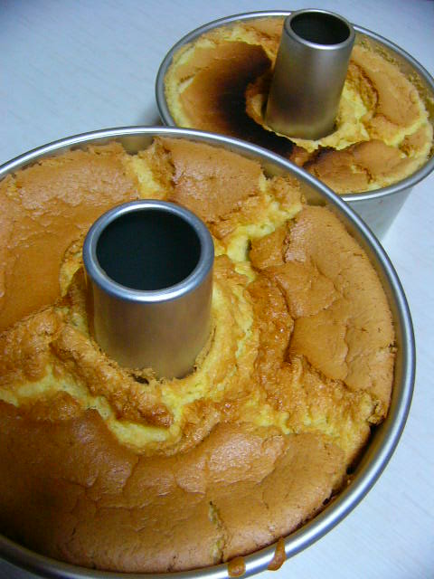 >シフォンの型出し、大変ですね。