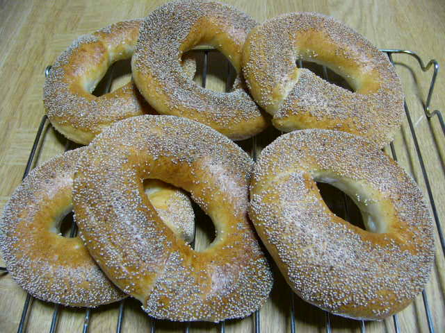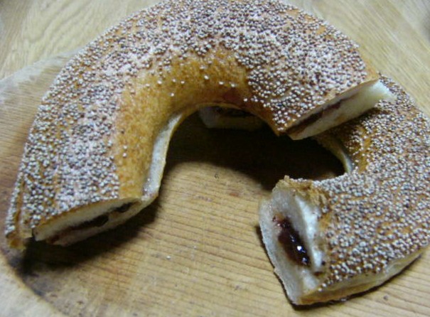 あちらこちらで拝見している、うりゃ!とトッピングするベーグル、私もやってみました♪