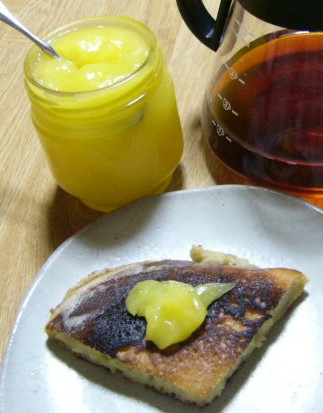 それは、レモンカード。レモンと卵とバターのジャムみたいなものです。