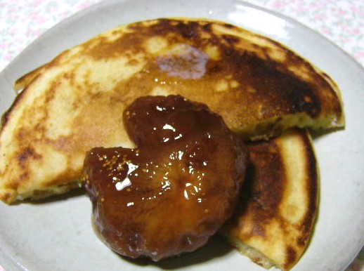 お友だちが来る前、朝にパンケーキを試食したときは、いちじくジャムを添えて食べたんだよ。