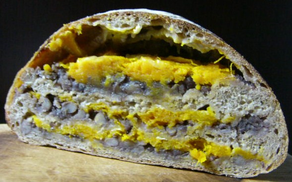 食べてみたら、こりゃ~ドイツ風まんじゅうといったところ。あんことかぼちゃは当たり前のようによく合っている。生地はサワー種効いててかなり酸味ありな感じ、チーズと合うと思ったけど、チーズが流れ出したせいもあり、量が少なかったせいもあり、あまりチーズな感じはしません。