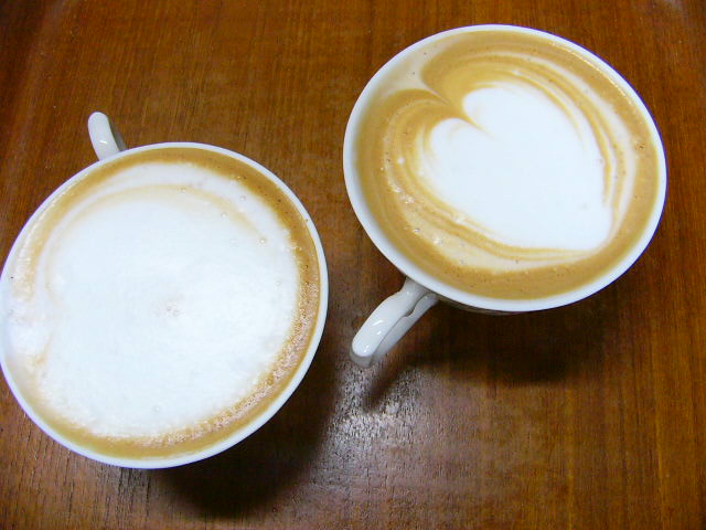 左のは、ミルクがブワブワに泡立ってしまった失敗作。