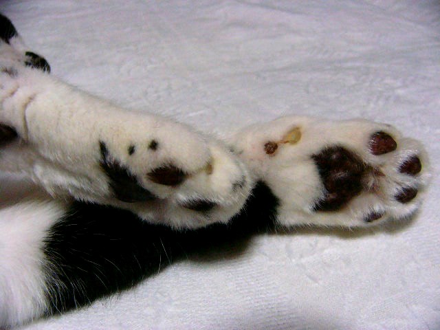 肉球のほとんどが黒いですが、一部肌色のところもあります。