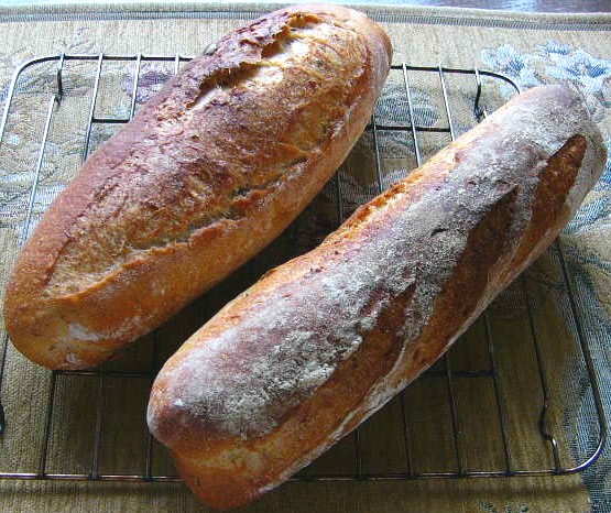 ナンシーさんのラスティック・ブレッドをちょっと変えて、粉の一部をライ麦にしてみました。また、発酵時間は、前回はレシピを無視してオーバーナイトの冷蔵発酵だったけど、今回はレシピどおりにさっさと済ませました。