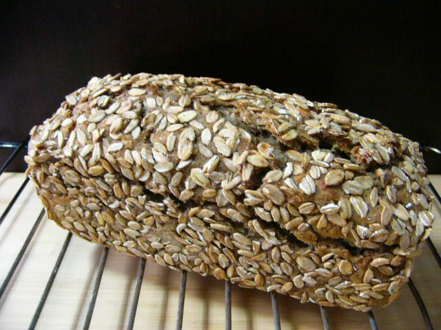 さて、これは先週の土曜日に焼いたパンの話。がっしり系のライ麦パンが大好きなAさんがたまたまその翌日の日曜日に教会にこられるんだった、と思って、フォルコンブロートを作ってみました。