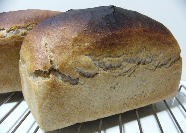 焼きあがったのは、底が色白で、脇や上が焦げたパン。